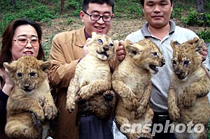 深圳野生动物园自二月二日成为禽流感疫区后,已有四十二天闭门谢客,仅天鹅湖的治理就用去近二百吨药品。解除封锁后,十四日首次允许新闻媒体入园采访,十五日对外开园迎客。图为动物园里刚满月的四胞胎小狮子。作者:陈文