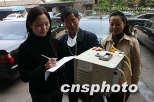 图:重庆环保官员现场监测空气质量