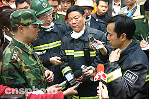 今天下午,重庆市对天原化工总厂残存有液态氯的三个贮气罐进行了人工引爆,三个贮气罐目前已被摧毁,险情被排除。十五日晚重庆天原化工总厂发生氯气泄漏爆炸事件,十五万群众被疏散。图为重庆市武警消防总队队长王沁林在现场指挥。