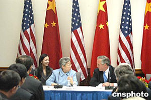好话说尽,等到中国副总理吴仪最后致辞时,她说:“他们讲得很好,我都没什么可讲的了。”虽说如此,吴副总理也讲了不少。