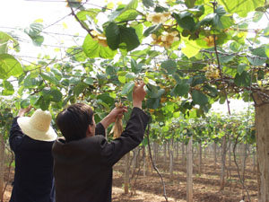 目前,该县人工发展猕猴桃8万亩,已挂果2.5万亩,产量达5000公斤,猕猴桃鲜果走进了北京、上海、大连等全国30多个大城市的超市和高级饭店,果汁、果酱还出口日本、韩国、马来西亚、美国等地。
