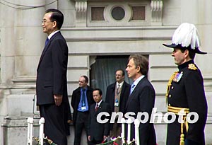 当地时间五月十日,英国首相布莱尔举行仪式欢迎中国总理温家宝。作者:朱大强