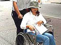 赵燕坐轮椅前往申请纽约犯罪受害人福利