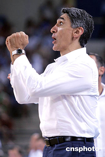 在当地时间8月19日举行的希腊与立陶宛的篮球比赛中,希腊队主教练Panagiotis Giannakis不时为队员精彩表现而欢呼。