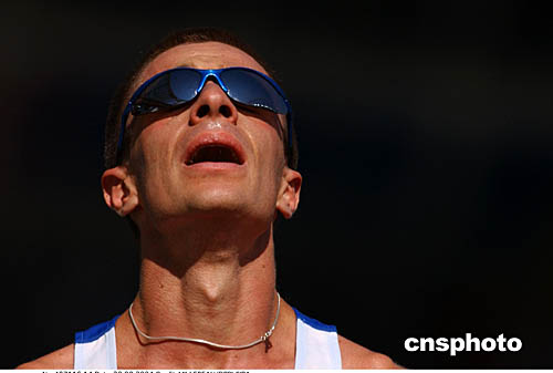 在当地时间8月20日举行的男子20公里竞走比赛中,意大利选手布鲁纳蒂(IVANO BRUGNETTI)以1小时19分40秒的成绩夺得冠军。图为他夺冠后仰天长望的镜头。