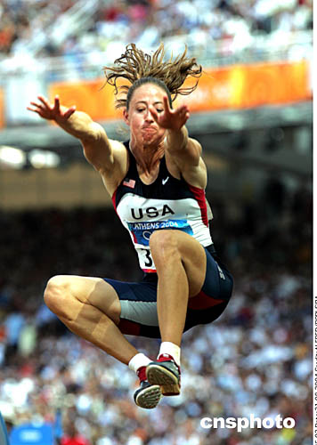 图为在当地时间8月21日举行的女子七项全能跳远项目比赛中,蒂法内-洛特-霍甘(Tiffany Lott-Hogan)的出色表现。