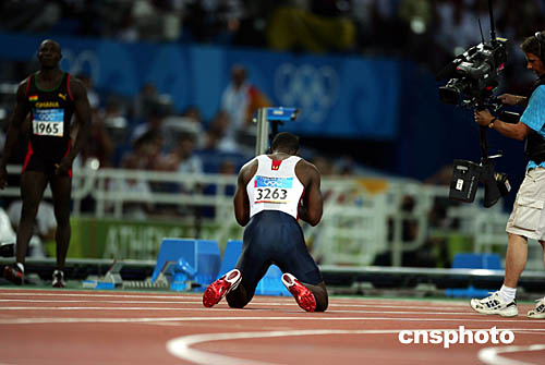 美国选手加特林(Justin Gatlin)在当地时间8月22日举行的男子100米“飞人”大战中力压群雄夺取桂冠。图为他在夺冠后兴奋的庆祝自己的胜利。