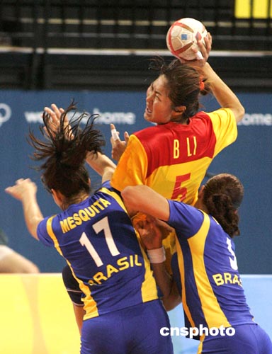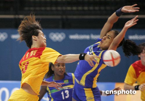 中新社雅典八月二十三日电 中国女子手球队今天在最后一场小组赛中以二十八比二十三战胜巴西队,四战两胜两负积四分名列小组第三位,进入八强。