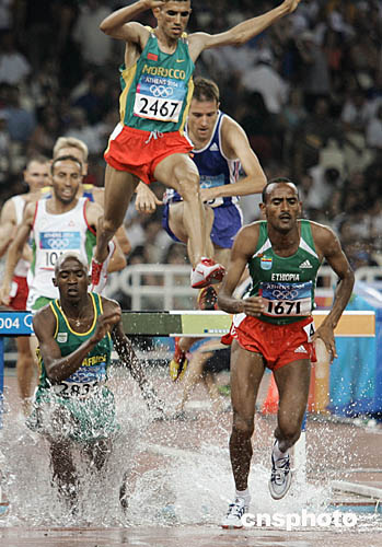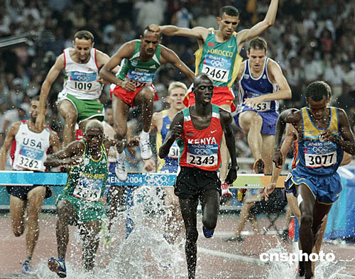图为在男子3000米障碍赛中,选手们的精彩表现。