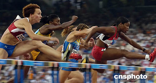 图为在女子100米栏和男子跳高比赛中选手们表现出色。