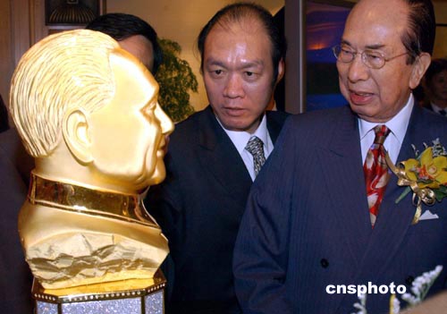 为纪念世纪伟人、中国改革开放的总设计师邓小平先生百年诞辰,“金至尊”特别动员三十多人精心铸造“邓小平金至尊美钻金像”,八月二十四日在香港举行揭幕仪式,该像以2.8公斤黄金,5000颗总重量达100卡拉钻石铸造而成,总价值超过港币一百万。作者:钱兴强