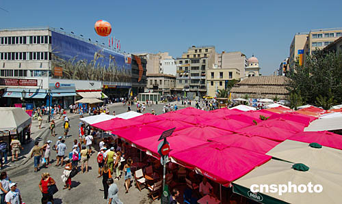 图为来自四面八方的人们聚集到蒙纳斯提拉奇广场(Monastiraki)跳蚤市场来买卖商品。奥运会给希腊带来了无限商机。