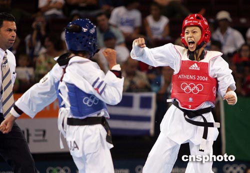 中新社雅典八月二十六日电 二十六岁的中国台北选手陈诗欣今天在奥运会女子跆拳道四十九公斤级决赛中力克古巴名将莱布拉达,为中国台北夺得奥运会历史上的首枚金牌。