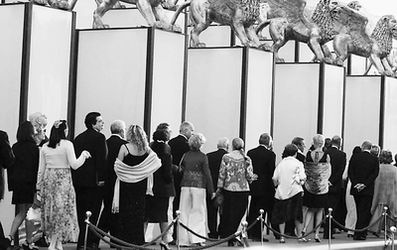 不知道从什么时候开始,欧洲电影节和罢工游行就像孪生兄弟一样,形影不离。本届威尼斯电影节也不能幸免。傍晚时分,在参展演员和导演下榻的威斯汀酒店外,一群统一着装的人组成方队围在门口,他们每个人身上都挂着大纸牌,纸牌背面写着:“威娜”危害身体健康,请禁止其生产。原来本届电影节最大的赞助商之一就是世界知名美发厂商“威娜”。电影节开幕式开始,明星们走上红地毯时,还不断有游行队伍在周围逡巡,不过,尽管是游行,他们的态度却很平和,沉默寡言,丝毫没有影响电影节开幕式的进行。