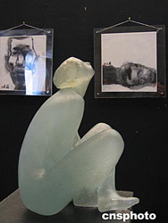 十月一日至十日,在巴黎最高的画廊——距地面一百多米的拉迪芳斯新凯旋门画廊举办了一个汇粹了中法两国艺术家并集绘画、雕塑、摄影于一体的大型展览。来自浙江画院的十八位画家的八十余幅中国画、来自浙江嘉兴的二十五位摄影家拍摄的近百幅照片,同法国雕塑家的雕塑作品一道展出,东西方文化间的交流与对比表现得淋漓尽致。图为中国画家写意中国画前的法国雕塑家的人体雕塑作品,两者风格迥异,却顾盼成趣。作者:钟诚
