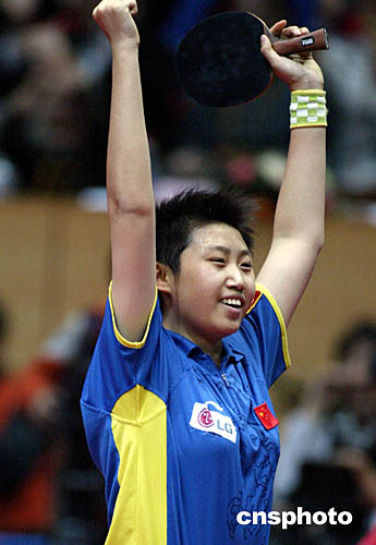 十六岁的小将郭跃今天表现神勇,在女单比赛中接连战胜状态回勇的老将王楠和上届冠军牛剑锋,获得其运动生涯中第一个国际大赛冠军,也成为该赛事历史上最年轻的冠军。