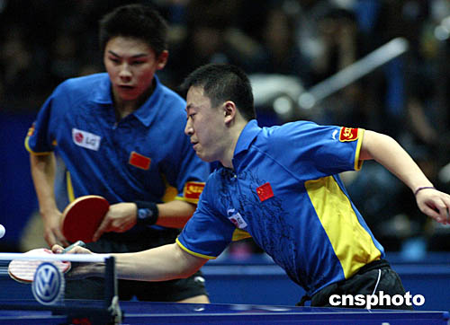 也许是因为都惦记着女单决赛,郭跃和牛剑锋在女双决赛中发挥欠佳,败在雅典奥运会冠军王楠/张怡宁拍下。