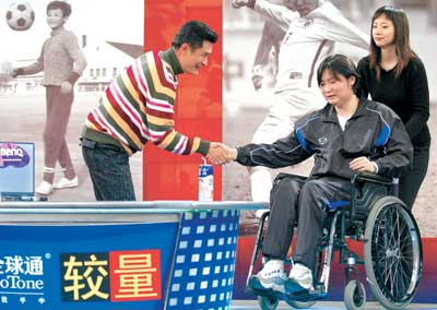《较量》是目前内地惟一一档由国家体育总局支持的体育人物访谈节目,已经播出一年有余,栏目主要通过访谈体育人揭示他们的人生亮点和特殊轨迹。照说这样的节目应该找体育圈中的人,没想到这次主持人却换成了著名的“娱乐圈大嘴巴”黄安。问黄安怎么混入“体育圈”的,黄安开口就让人笑:“因为郭晶晶、田亮走入娱乐圈了,所以我们这些娱乐圈的人要打进体育圈!”接着他又正经解释,因为他写过的一本书《谁搞垮了娱乐圈》吸引了栏目制片人的注意,觉得他的语言风格比较适合《较量》,所以专门找他来当这个主持人。
