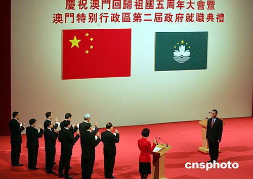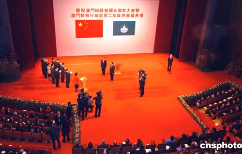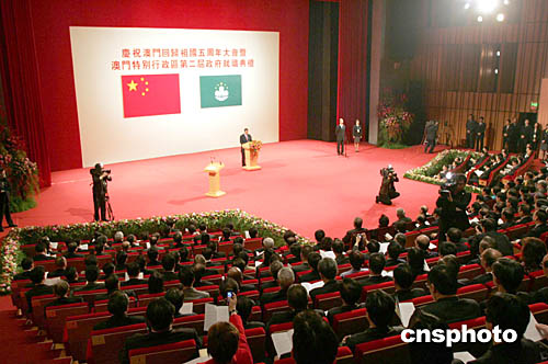 庆祝澳门回归祖国五周年大会暨澳门特别行政区第二届政府就职典礼十二月二十日在澳门文化中心举行。