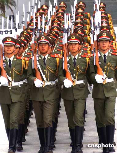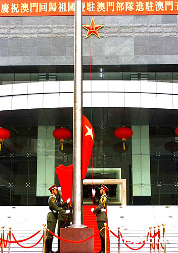 解放军驻澳门部队20日上午庄严举行升旗仪式,庆祝澳门回归祖国五周年。作者:宋吉河