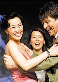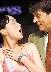 当总裁上台献花时,她为了感谢对方的爱戴,竟主动热情地和他嘴对嘴,事后,广告商更送她一只价值5万多元港币(约1万多新元)的钻表,让她笑得合不拢嘴。