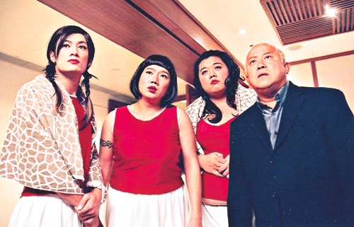 中新网5月21日电 据香港大公报报道,香港男艺员余文乐、杜汶泽和“肥仔聪”在新片《精装追女仔2004》中演新一代追女王,各人在戏中都有多个不同造型,更要反串扮女人。(见上图)