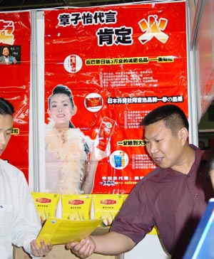 该产品的招商广告极具诱惑力,为“有章孑怡代言肯定火”。很多市民乍一看以为是章子怡,发现根本不是一回事后直呼上当。