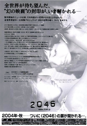 中新网7月23日电 据新京报报道,预定今年10月在亚洲各地上映《2046》近日已在日本展开宣传攻势,在影院播出宣传片并贴上以王菲及木村拓哉为主的海报。
