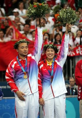 中新社雅典八月十九日电 中国雅典奥运羽毛球队今天一扫前两日男单、男双尽墨的阴霾。继张宁摘取女单桂冠后,悉尼奥运冠军张军/高崚又卫冕成功。在刚刚结束的混双决赛中他们以二比一的总比分战胜了来自英国的罗伯逊/埃姆,三局比分分别为十五比一、十二比十五和十五比十二。