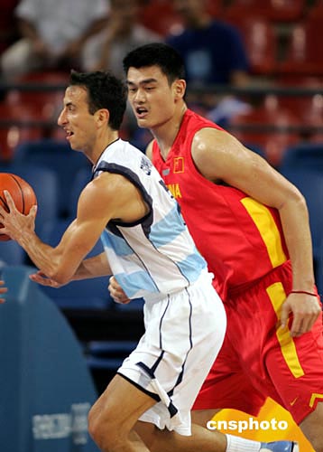 第四节,刚刚找到感觉的姚明连得七分,但中国队的失误也达到二十一次,双方的比分差距维持在二十五分左右。眼见大势已去,哈里斯换下姚明,中国队在垃圾时间里“巩固”了二十五的差距,以五十七比八十二“申领”了小组赛的第二场失利。