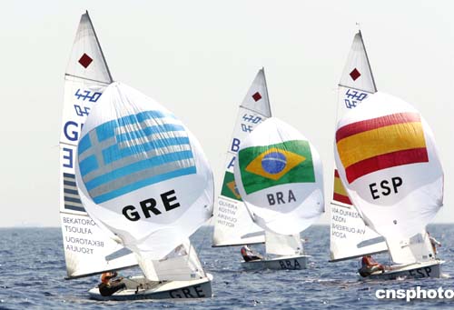 图为8月19日奥运会女子帆船比赛希腊队勇夺冠军的情景。