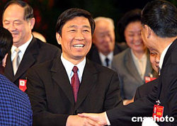 江苏省第九届三次会议一月十八日上午在南京人民大会堂开幕,来自全省各地七百多名委员出席大会。此次会期四天半,是近年来会期最短的一次政协会议。图为中共江苏省委书记、省人大常务委员会主任李源潮与委员们握手交流。作者:丁梅