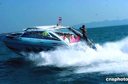 16日的泰国布吉岛海面上风平浪静,游船上的情绪高昂,尽情享受大自然风光。海啸地震过后,到这里旅游的客人日益增多,当地旅游业正在逐步复苏。作者:宋吉河