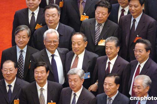 十届全国人大三次会议第四次全体大会三月十三日上午在北京人民大会堂举行,列席会议的部长们会后在大会主席台前合影留念。作者:陈文