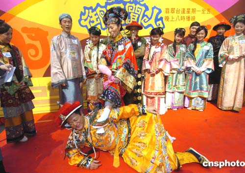 正在香港黄金时段播出的电视剧《御用闲人》剧中演员身着戏装19日来到尖沙咀闹市区演戏﹐为该剧播出进行宣传造势。作者:赵振清