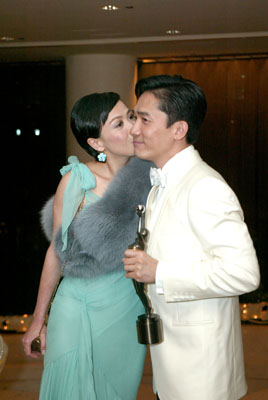 “伟仔”与嘉玲在颁奖礼结束不久即抵达庆功宴会场,五度称帝的他一直面露笑容,上台领奖时的紧张一扫而空,嘉玲更即场吻贺男友。“伟仔”解释,他上台时的心情就好像第一次拿奖一样紧张,因他已因为《花样年华》里的周慕云而夺得影帝,今次在《2046》里再演同一个角色,要能够拿两次奖,难度非常高。因此,他对获奖感到十分开心,但同时又承认并不觉得太意外,因他之前已凭《2046》夺得香港电影评论学会的“最佳男演员”奖,自然也想再在金像奖得奖。对于成为五届影帝,他只以“好彩”来形容,说自己运气好,王家卫“脚头”也好。另外,出炉影后章子怡继续其“少话”本色,庆功宴上仍来去匆匆,不肯多谈感受,只表示很开心,已经即时致电家人及朋友报喜。