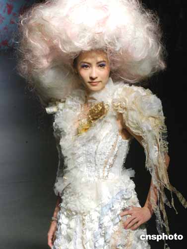 歌影红星张柏芝4月16日在香港为著名时装设计师尹泰尉时装演译作品。作者:邓庆乐