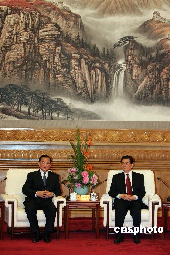中新网4月29日电 中共中央总书记胡锦涛今天下午和中国国民党主席连战在北京举行正式会谈。胡锦涛强调,当前,两岸关系正处在关键时期。构建和平稳定发展的两岸关系,对两岸同胞有利,对中华民族的长远发展有利。我们两党应该为此作出积极努力。