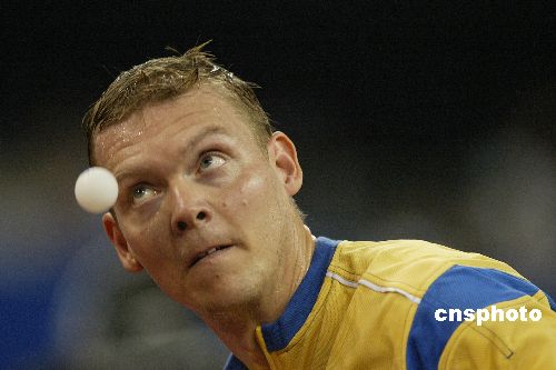 五月四日,第四十八届世界乒乓球锦标赛继续在上海体育馆进行,在男单八强的争夺战中瑞典老将卡尔松雄风依旧,杀入八强。作者:盛佳鹏