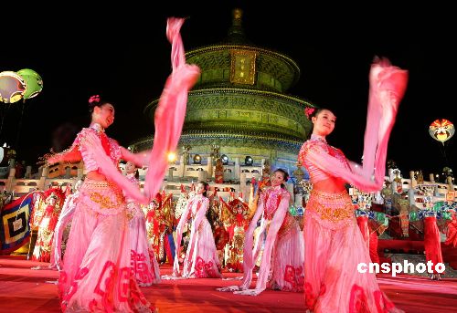 5月17日晚,北京市市长王岐山在天坛祈年殿举办欢迎《财富》论坛嘉宾盛宴,古代皇帝的祭天场鼓乐声声,仙女飘飘。作者:任晨鸣