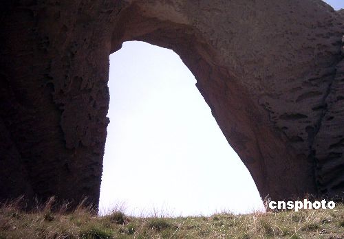 中新网6月10日电 在新疆海拔三千多米的帕米尔高原上,近日发现一座罕见的“天门”。它位于西天山南脉,呈“∩”字型,宽一百米,高五百余米,屹立在旷野之中。由于道路艰险,该“天门”成为探险者一试身手的去处。(张君辉)