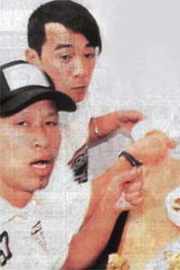 当时,记者上前拍照,婉婉立即低头,小春见状即喝骂:“不要拍呀!”继而便拿起前面的粿条泼向记者,记者离开该店后,婉婉立即与小春耳语一番,似是劝他不要动怒,半小时后,众人分别离开。