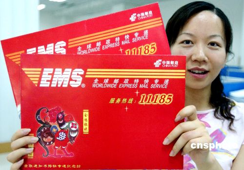 2005年6月28日,河南省启用由中国邮政发行的2005年高考录取通知书专用特快专递信封。这种专递信封采用喜庆的大红颜色和传统的“金鸡报晓”的图案为考生送去喜讯。作者:马健