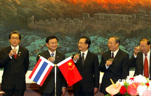 温家宝指出,巩固和发展中泰睦邻友好合作是中国政府的既定政策,中方愿与泰方一道继续努力,全面推进中泰友好合作。温家宝在会谈中对中泰关系的未来发展提出以下希望:一是以中泰建交30周年为契机,进一步加深两国战略性合作关系,及时就重大国际和地区问题交换意见;二是加强两国企业界的联系,不断优化贸易结构,探索新能源的开发与利用,提高经贸合作水平;三是深化两国安全合作,促进文化、旅游的交流与交往;四是积极落实中国与东盟战略伙伴关系行动计划,推动亚洲区域合作不断向前发展。