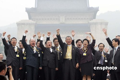 今早八时十五分,新党访问团的车队驶抵中山陵博爱广场,沿墓道来到碑亭前。绕过镌有“中国国民党总理孙先生葬于此”的碑亭,访问团一行没有停留,拾级而上,到达祭堂。