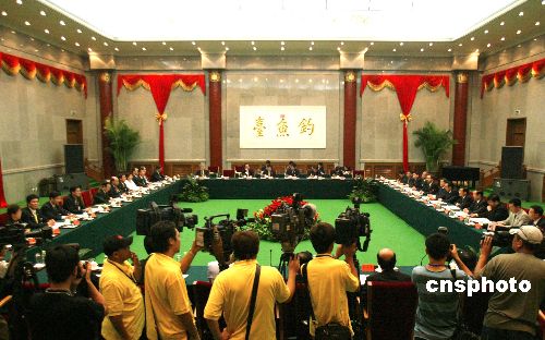 七月十日,中共中央台湾事务办公室主任陈云林与新党主席郁慕明在北京举行会谈。作者:廖文静