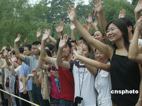 七月十二日,新党大陆访问团在中国人民大学参观访问,新党主席郁慕明向师生们挥手致意。作者:史利