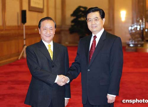 图:胡锦涛会见新党主席郁慕明