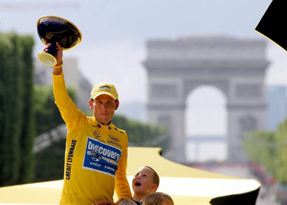 第92届环法自行车赛24日在巴黎结束。探索频道车队的美国传奇车手兰斯·阿姆斯特朗总成绩排名榜首,从而连续第七次夺得这项世界著名自行车赛事的冠军。