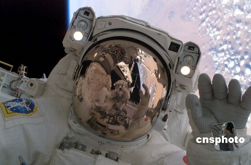 图:“发现号”宇航员太空行走 放眼浩瀚宇宙